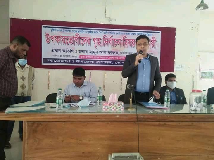 মুজিব শতবর্ষ উপলক্ষে গৃহহীনদের মাঝে পাকা গৃহ বরাদ্ধের জন্য লটারী অনুষ্ঠান